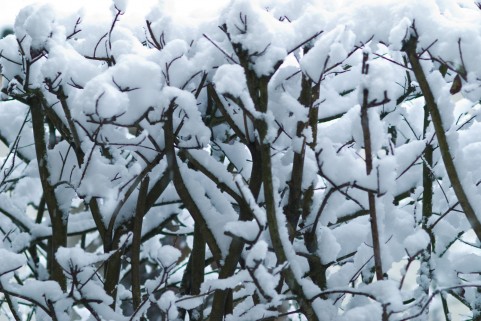 樹木の枝に氷がついたり、雪の重みで折れ曲がったり、庭木も凍えていると思います。